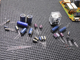 Each of the 22,000/80V capacitors were replaced with high grade 22,000 mfd 100V Nippon Chem-Con capacitors. The safety capacitors were replaced with .01 X1Y2 1Kv rated and new .01 ECW PP bypass film capacitors.