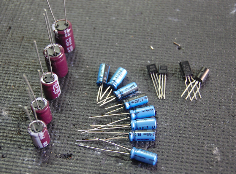 All small signal transistors were replaced with a low noise, modern TO-92/TO-92L type Fairchild devices and new Vishay general axial diodes.